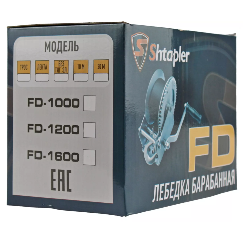 Технические характеристики Лебедка ручная барабанная Shtapler FD-1200 (540кг, 10м, лента)