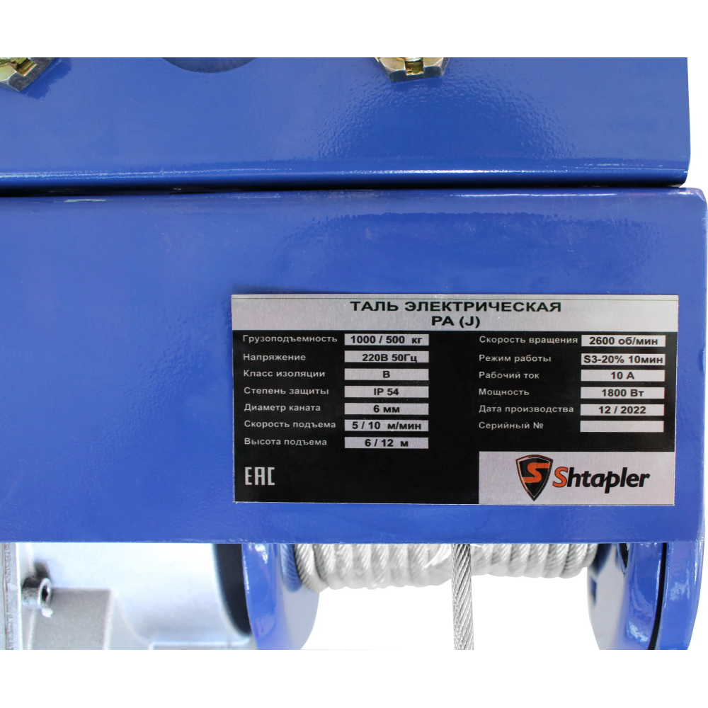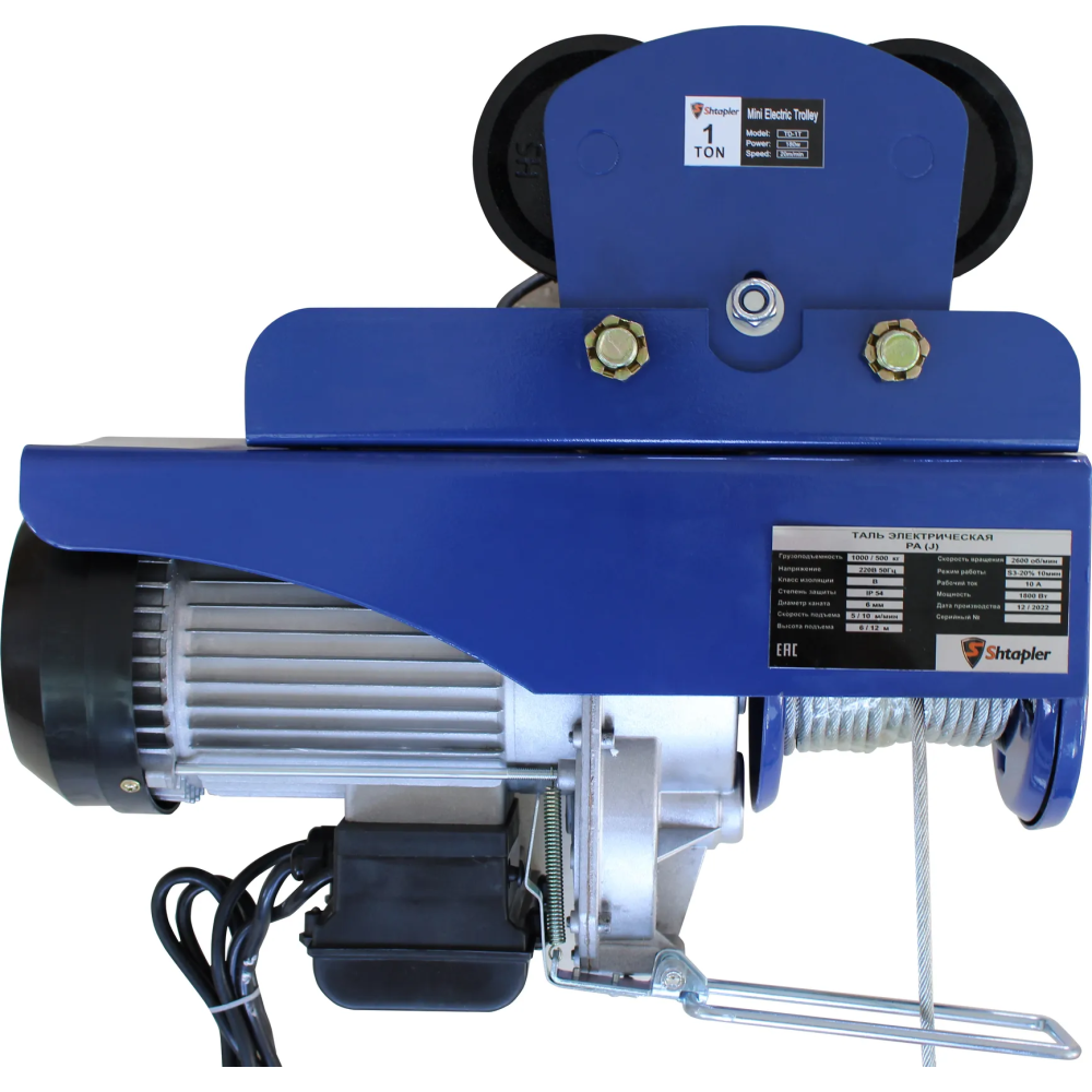 Технические характеристики Таль электрическая передвижная Shtapler PA (J) 1000/500кг 6/12м