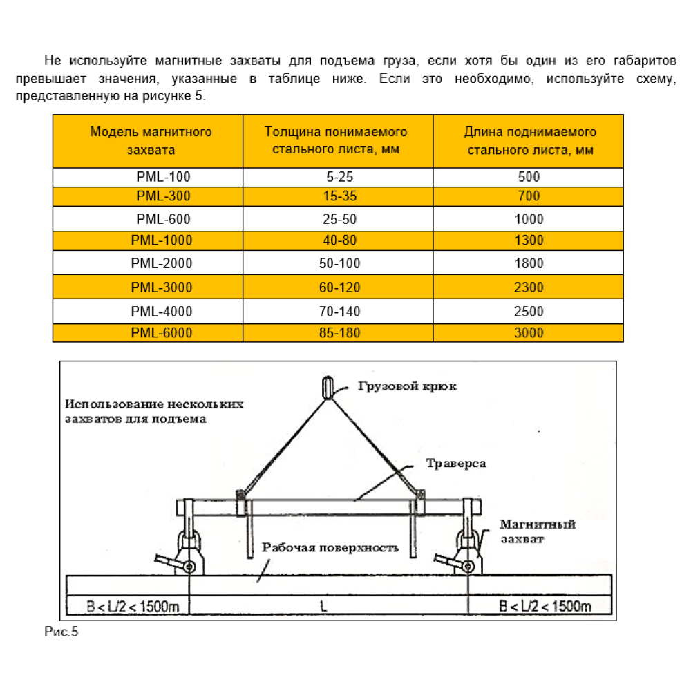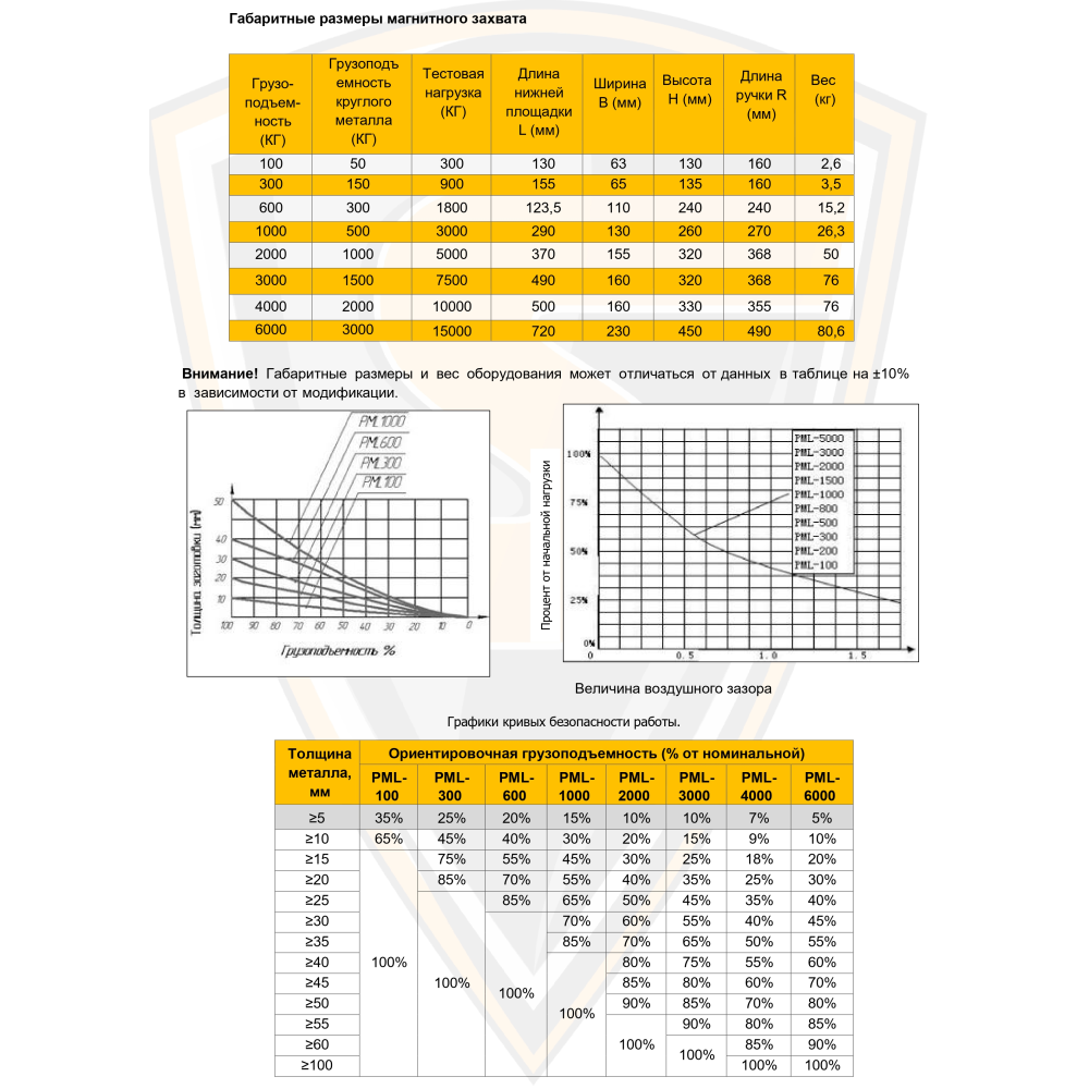 Технические характеристики Захват магнитный Shtapler PML-A 100 (г/п 100 кг)