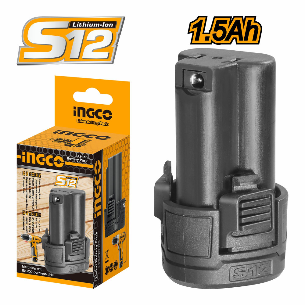 Аккумуляторная батарея Li-Ion 12 В INGCO FBLI12152 емкостью 1.5 Ач подходит для всех аккумуляторных инструментов семейства S12 .
