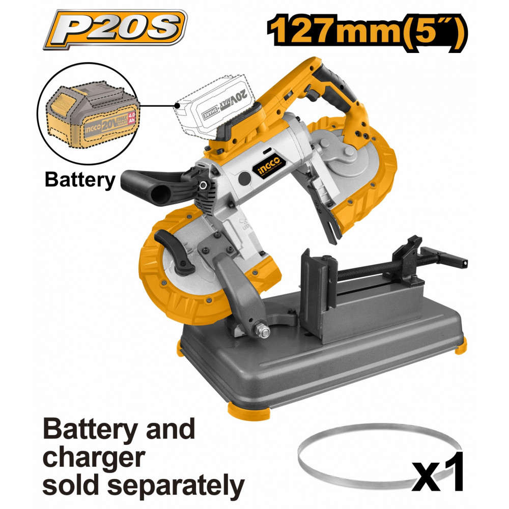 Аккумуляторная ленточная пила 20В без АКБ и ЗУ INGCO CBSLI20127 INDUSTRIAL предназначена для обработки металлических заготовока также для эксплуатации на строительных площадках и в частных мастерских. Пила имеет опорное устройство.
