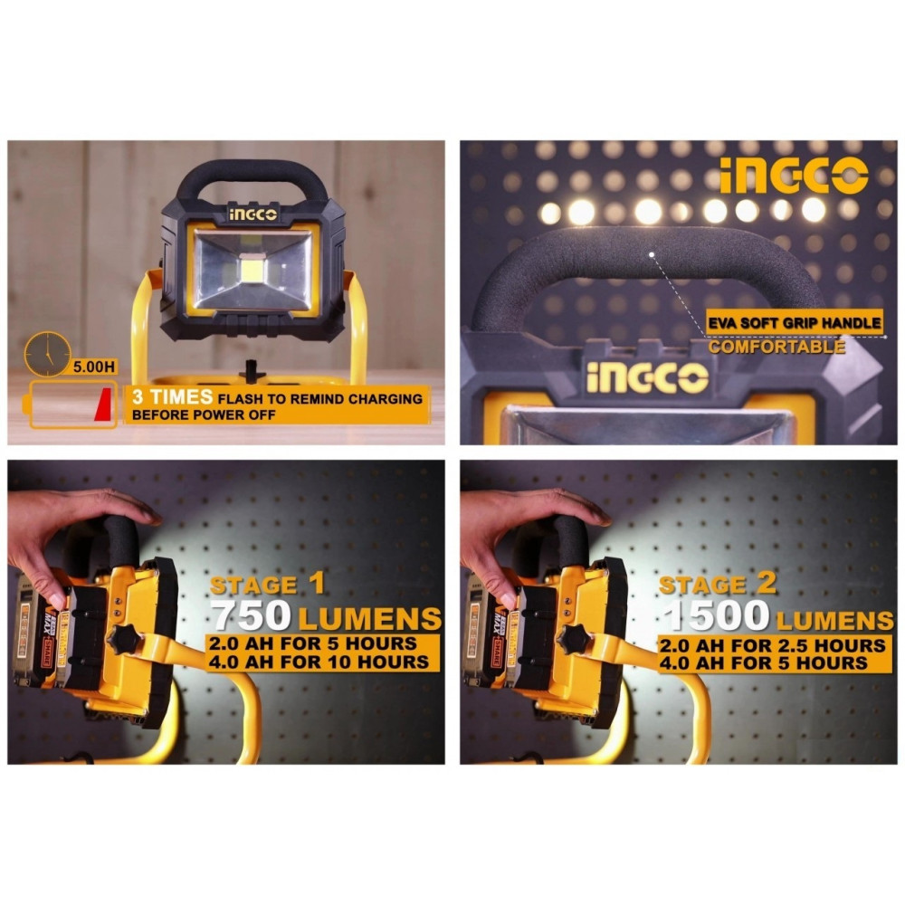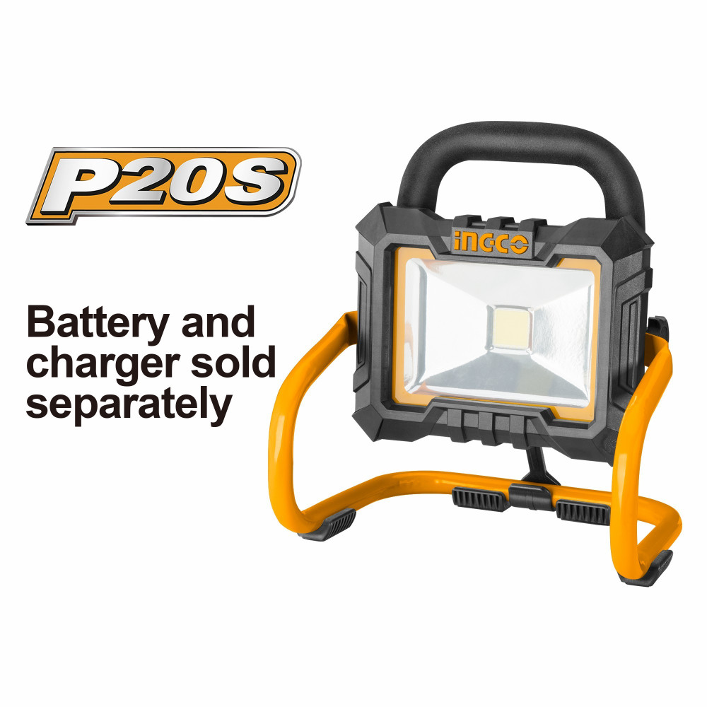 Аккумуляторный фонарь-прожектор 20В Li-Ion INGCO CWLI2002серии P20S осветительный прибор прожекторного типа. Фонарь такого типа служит для равномерного освещения помещений большой площади.