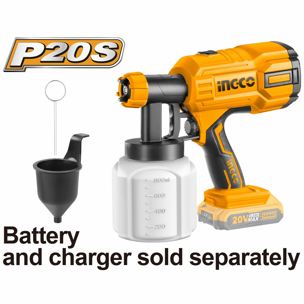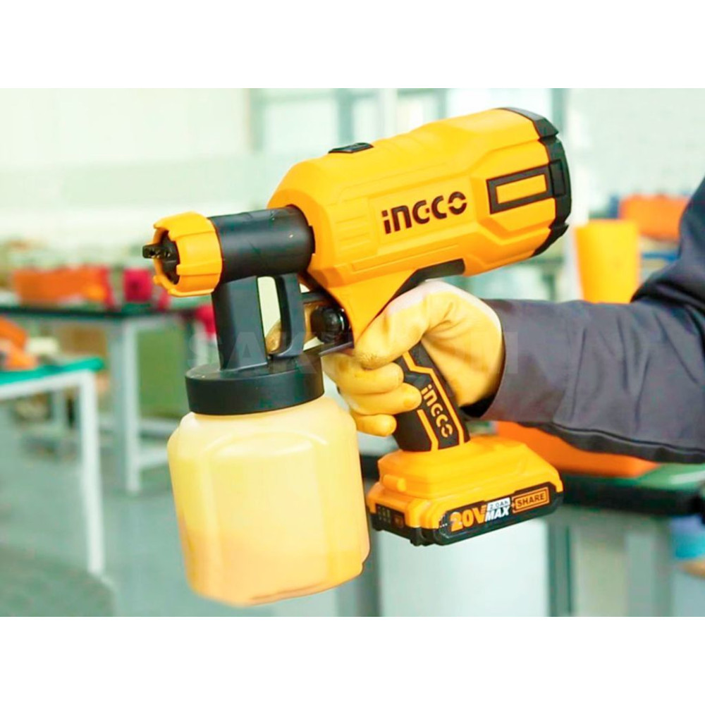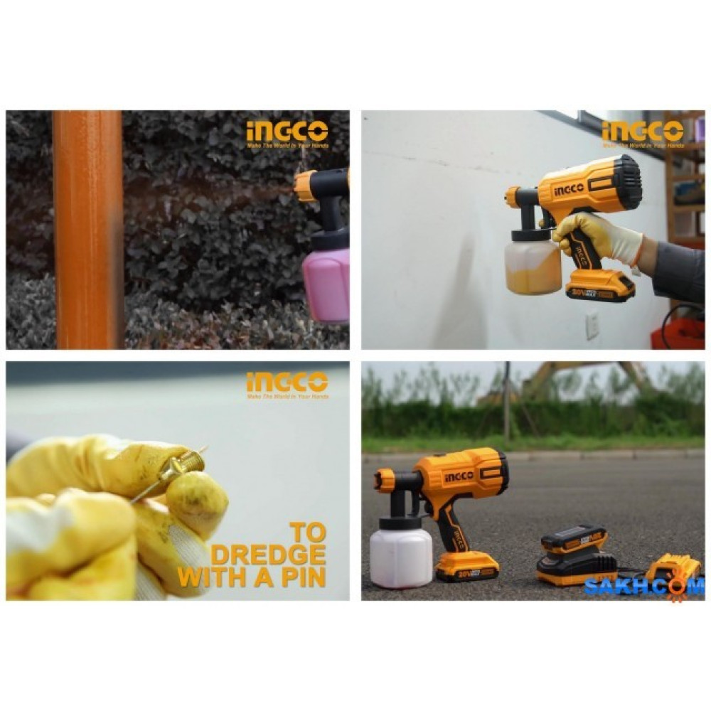 Аккумуляторный краскопульт INGCO CSGLI2001 применяется для быстрого и равномерного нанесения красящих составов на различные поверхности.
