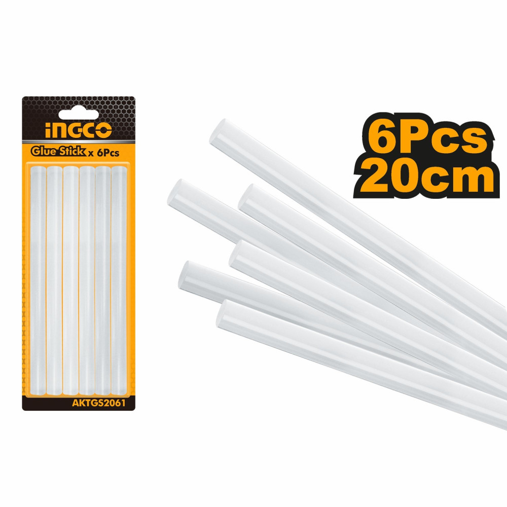 Клеевые стержни прозрачные для клеевого пистолета6 шт, 11.2х200мм INGCO AKTGS2061используются совместно с клеевыми пистолетами, являются универсальными и применяются для склеивания изделий из дерева, металла, пластика, ткани, кожи, стекла, керамики, бумаги, картона, резины.