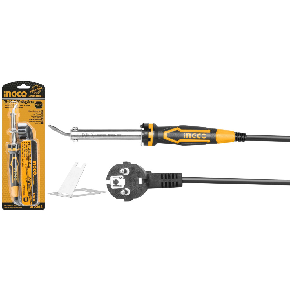 Паяльник электрический изогнутое, плоское 60Вт INGCO SI0368 INDUSTRIAL может быть использован для решения широкого круга задач, например: ремонт проводов, пайка и замена радиодеталей, ремонт тонкостенных металлических трубных соединений, быстрый прожиг отверстий в пластике, отрезка лишних частей в пластиковых деталях и корпусах.