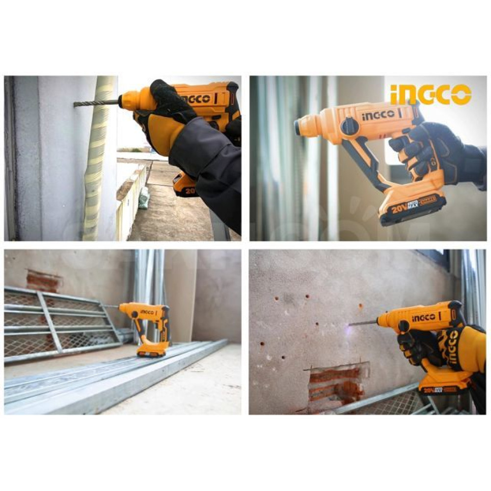 Аккумуляторный перфораторSDS-Plus INGCO CRHLI1601 предназначен для сверления отверстий в бетоне, кирпиче и природном камне, а также для легких долбежных работ. Он также пригоден для сверления отверстий в древесине, металле, керамике и синтетических материалах.