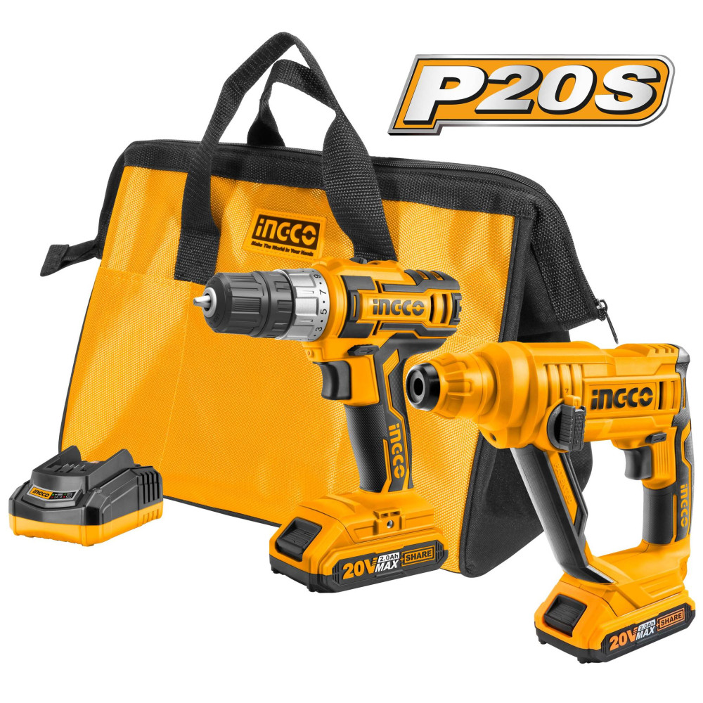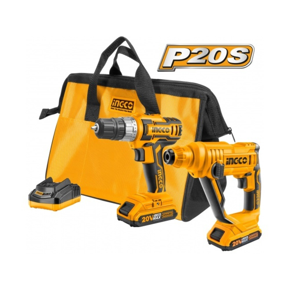 Набор аккумуляторных инструментов 20В Li-Ion INGCO CKLI2008 вкачестве источника питания инструментов используется литий-ионный аккумулятор 20 В.