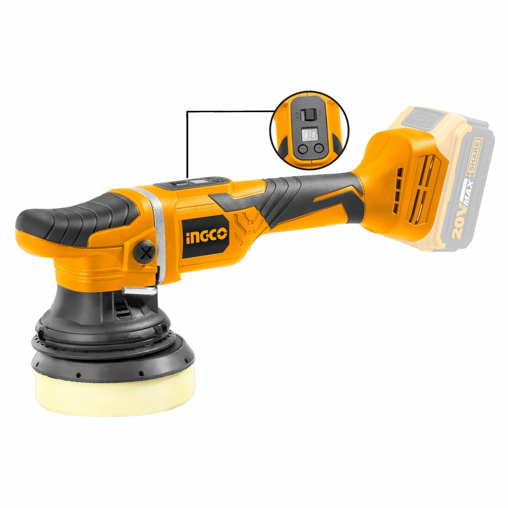 Машина полировальная аккумуляторная 125мм 20В INGCO APLI2002 INDUSTRIAL бесщеточный, широко используется в автомастерских серии P20S . Корпус редуктора с обрезиненным покрытием для оптимального удобства.