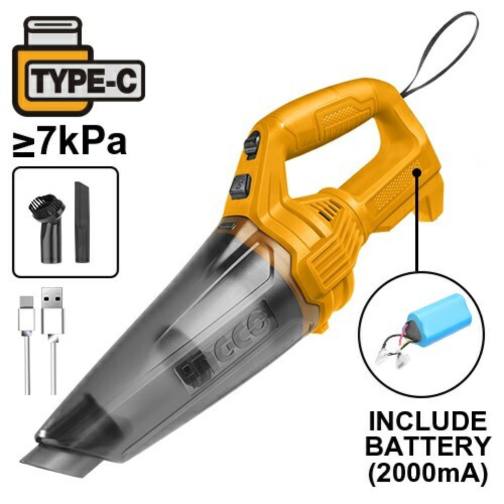 Аккумуляторный пылесос 11.1В встроенный АКБ USB type-C INGCO CVLI2026 предназначен для сбора сухого мусора, идеально подходит для уборки автомобиля/