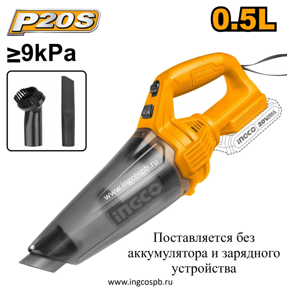 Аккумуляторный пылесос 20В без АКБ и ЗУ INGCO CVLI201261 серии P20S предназначен для сбора сухого мусора, идеально подходит для уборки автомобиля/