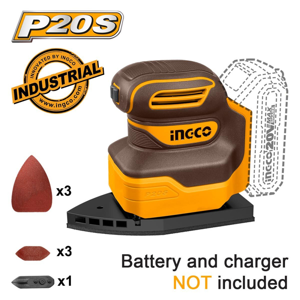 Аккумуляторная вибрационная шлифмашина 20В без АКБ и ЗУ SUPER INGCO CPSLI2014 INDUSTRIAL