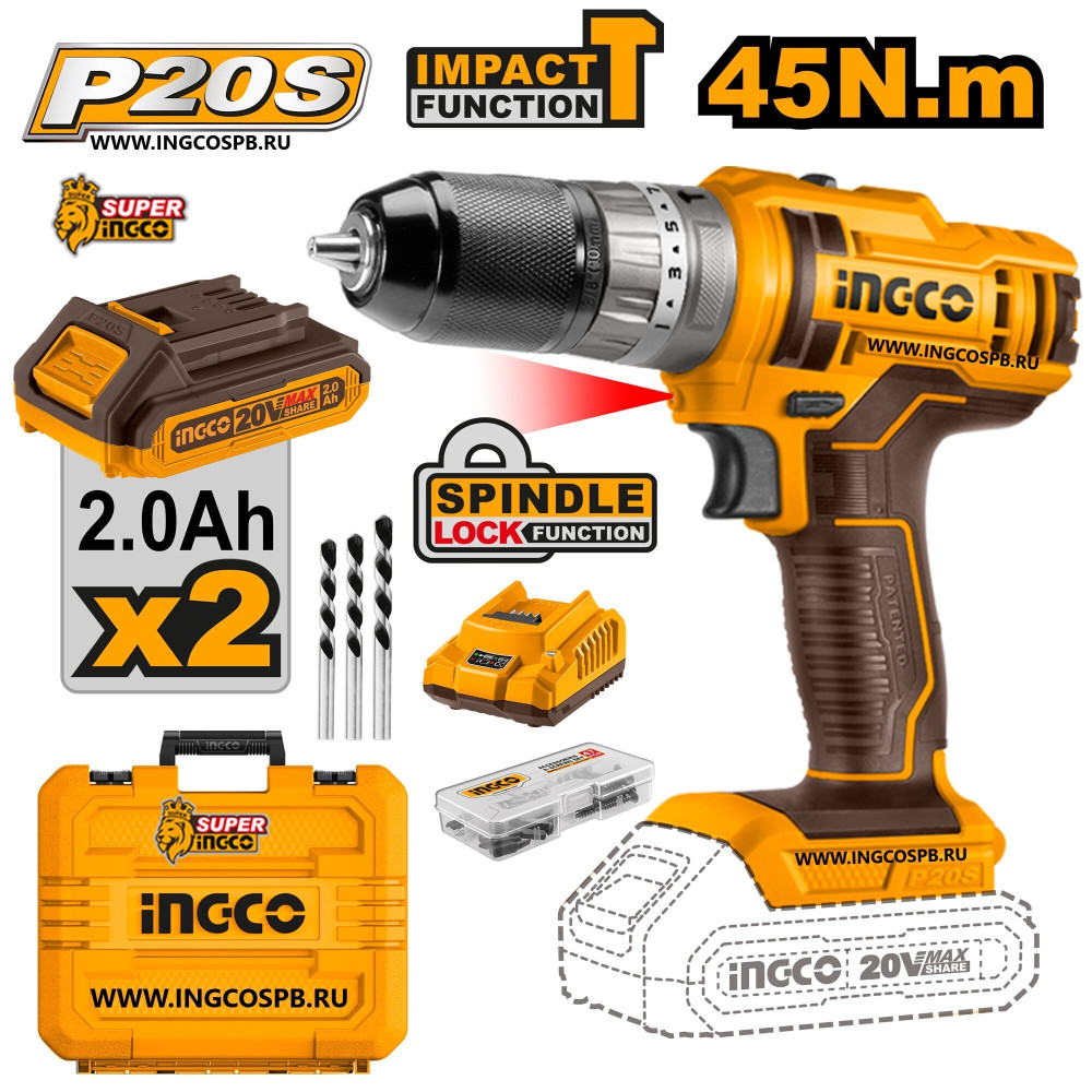 Аккумуляторная ударная дрель-шуруповерт 20В 45Нм 18+1+1 SUPER INGCO CIDLI201452 INDUSTRIAL предназначен для сверления отверстий в пластике, древесине, металле, закручивания саморезов, винтов и прочих крепёжных элементов при сборке мебели, монтаже различных конструкций, выполнении ремонтных, строительных и отделочных работ как внутри зданий, так и на улице.