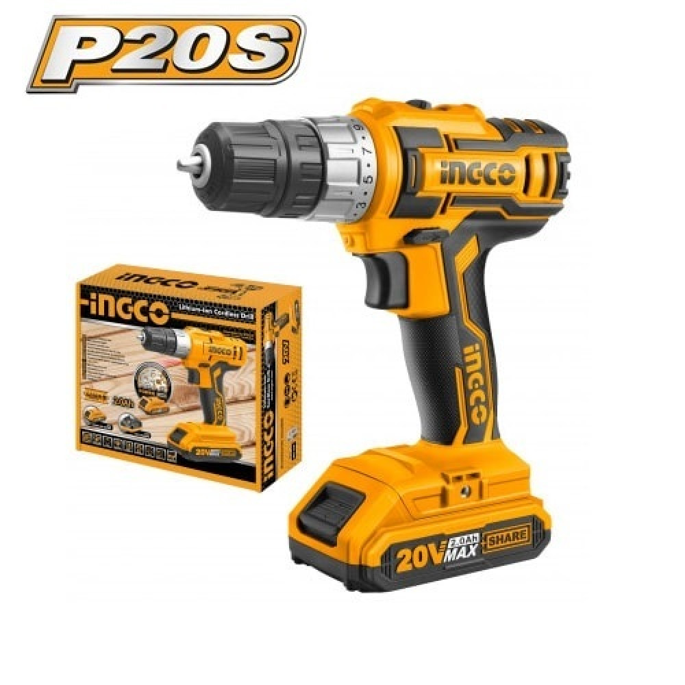 АккумуляторныйшуруповертINGCO CDLI20024STANDARD серии P20S предназначендля сверления отверстий в пластике,древесине, металле, закручивания саморезов, винтов и прочих крепёжных элементовпри сборке мебели, монтаже различных конструкций, выполнении ремонтных, строительных и отделочных работ как внутри зданий, так и на улице.