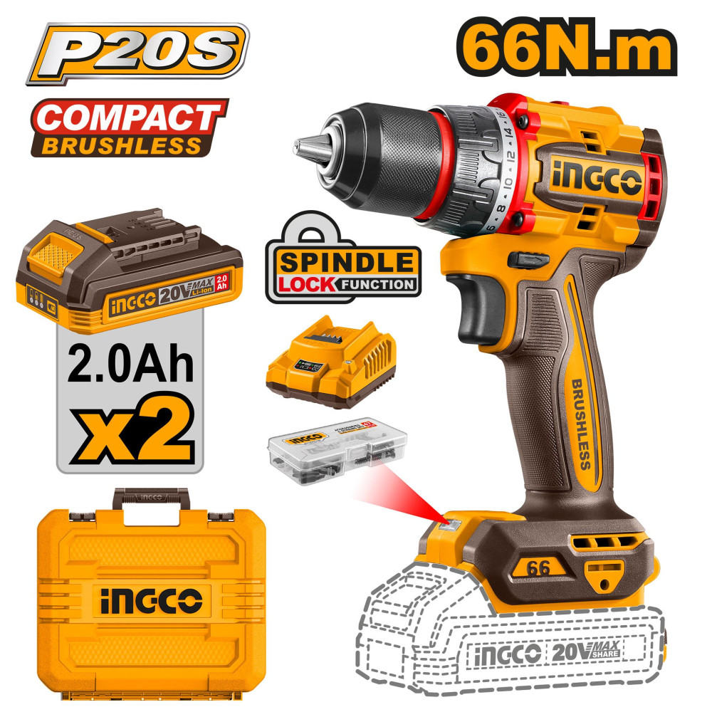Аккумуляторный бесщеточный шуруповерт в кейсе INGCO CDLI20668 INDUSTRIAL 20В 66Нм 22+1 предназначен для сверления отверстий в пластике, древесине, металле, закручивания саморезов, винтов и прочих крепёжных элементов при сборке мебели, монтаже различных конструкций, выполнении ремонтных, строительных и отделочных работ как внутри зданий, так и на улице. Защита от перегрузки гарантирует длительный срок эксплуатации. Защита от перегрева продлит срок службы изделия. Светодиодная LED-подсветка для более комфортной работы при плохом освещении. Блокировка шпинделя для быстрой замены оснастки.