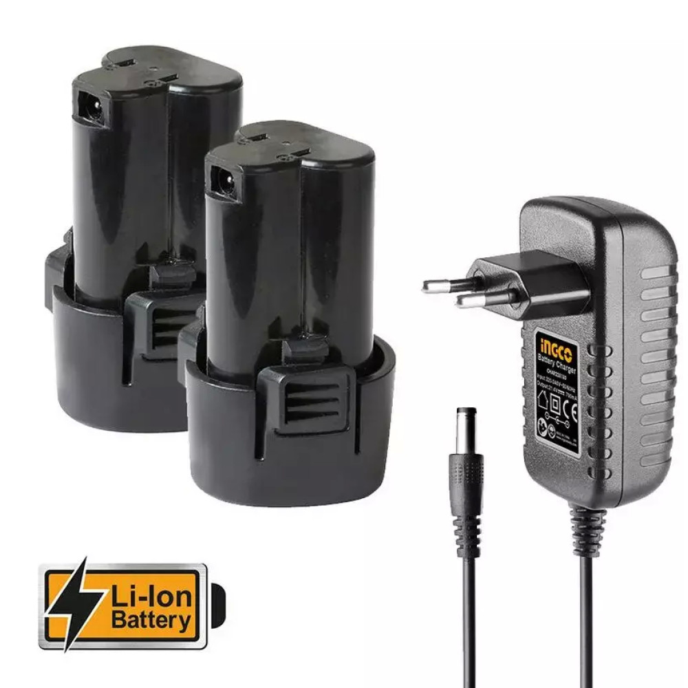 Набор аккумуляторного инструмента 12В 2 шт INGCO CKLI1201 включает в себя Шуруповерт 20Hm и Импульсный винтоверт 100 Нм линейки STANDART.