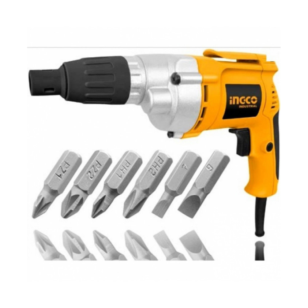 Сетевой шуруповерт для гипсокартона INGCO ESD5501 профессиональной серии INDUSTRIAL предназначендля сверления отверстий, закручивания саморезов, винтов и прочих крепёжных элементовпри работах по гипсокартону.