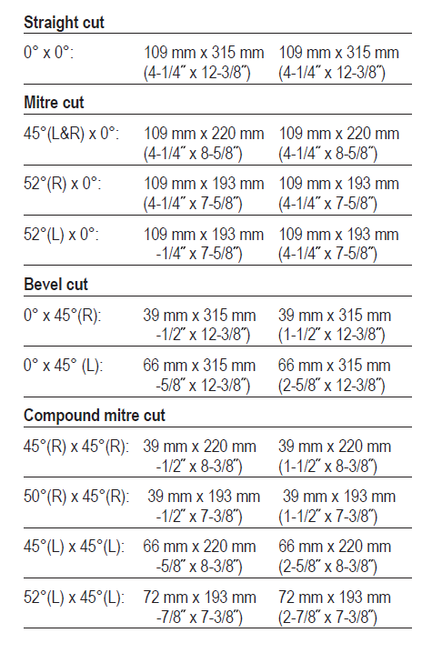 Этот инструмент предназначен в качестве стационарного станка для продольной и поперечной резки древесины с прямыми разрезами, а также угловыми разрезами (возможны горизонтальные углы наклона от -45° до +45°, а также вертикальные углы наклона от 0° до 45°)