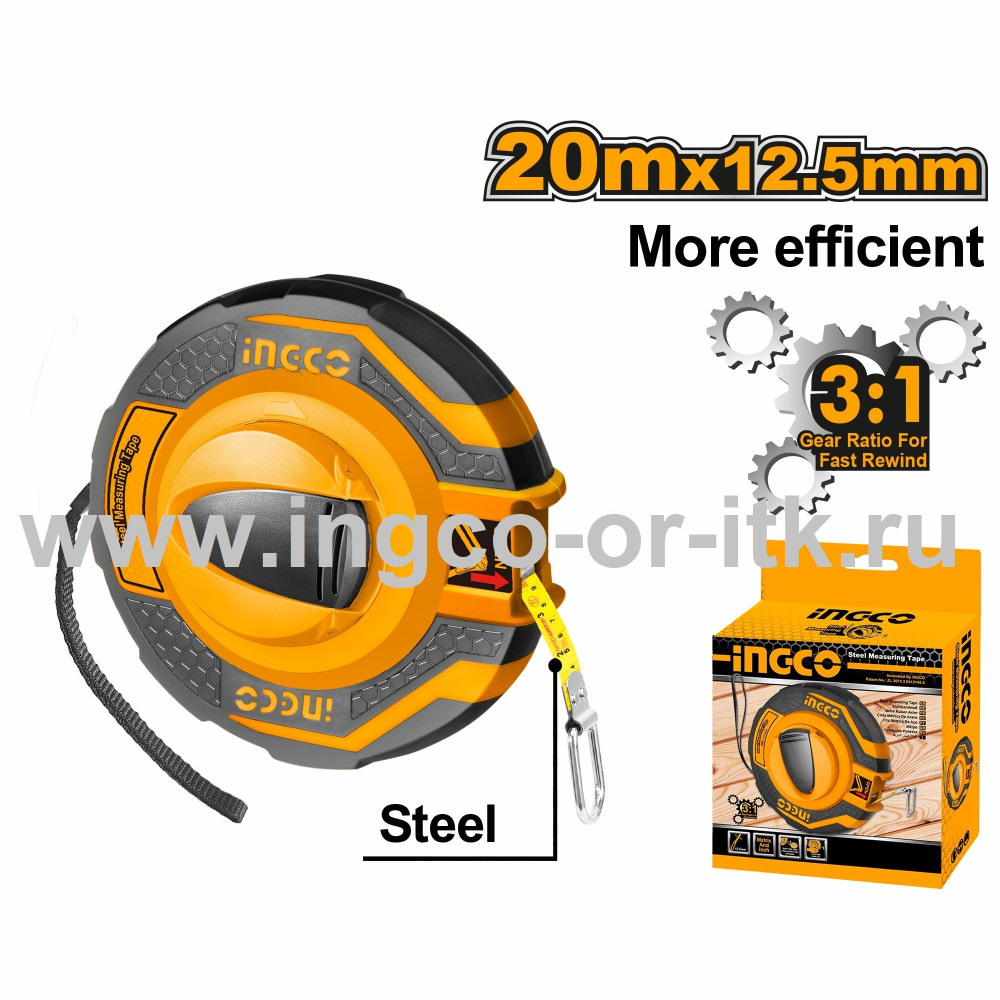 Мерная лента стальная 20х12,5 мм стальная лента INGCO HSMT8420 мм используется для проведения измерений в больших помещениях или на улице.
