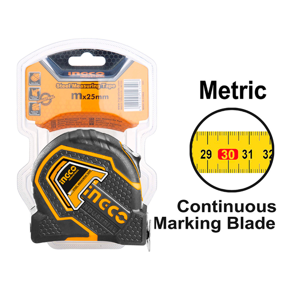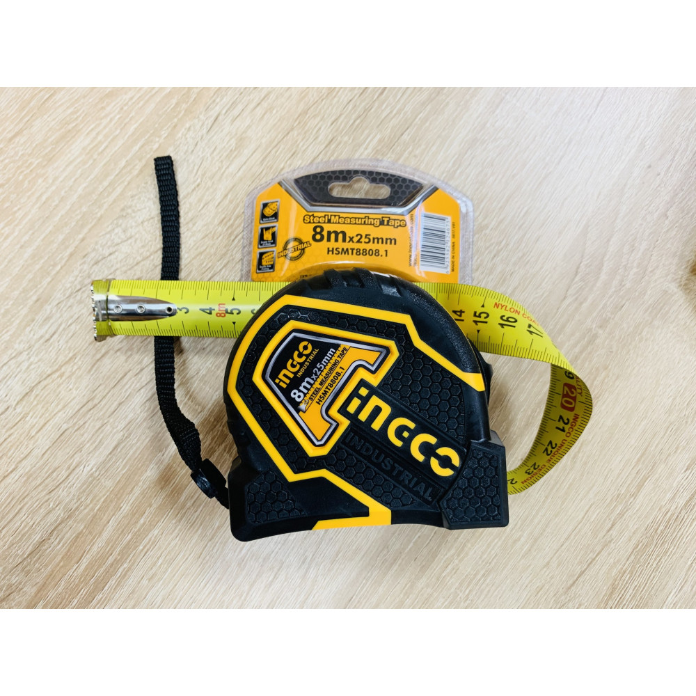 Рулетка 8х25 мм INGCO HSMT8808.1 INDUSTRIAL предназначена для замера длины во время проведения строительных или ремонтных работ.
