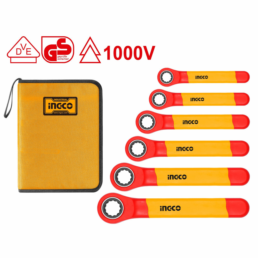 Набор изолированных накидных трещоточных ключей 6 шт. 1000В INGCO HKISPA0603 INDUSTRIAL предназначен для электромонтажных работ под напряжением до 1000 В .