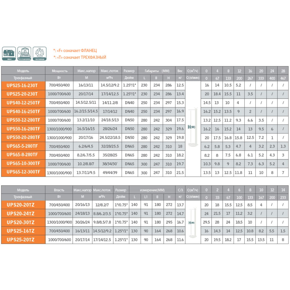 Циркуляционный насос UPS40-12-250TF GRANDFAR