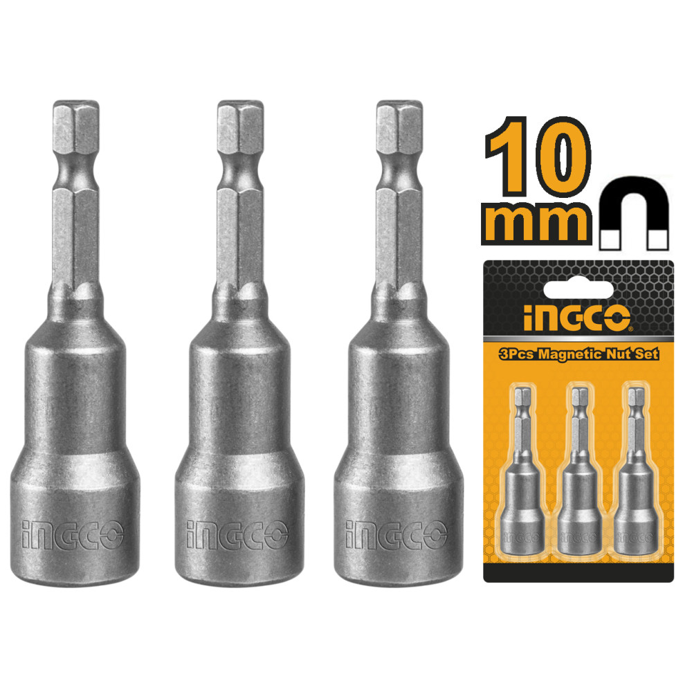 Бита 1/4 " с торцевой головкой магнитная 10х65 мм. 3 шт. INGCO AMN1031 используется совместно с гайковертами для монтажа или демонтажа резьбовых соединений.