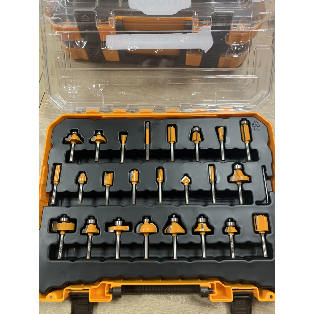 Набор фрез по дереву 24шт, хвостовик 6мм INGCO AKRT24062 INDUSTRIAL содержит ряд наиболее популярных и используемых фрез с наконечниками из карбида вольфрама для использования при работе с различными материалами. Предназначены для хвойных и лиственных пород дерева, ДСП, фанеры и МДФ.