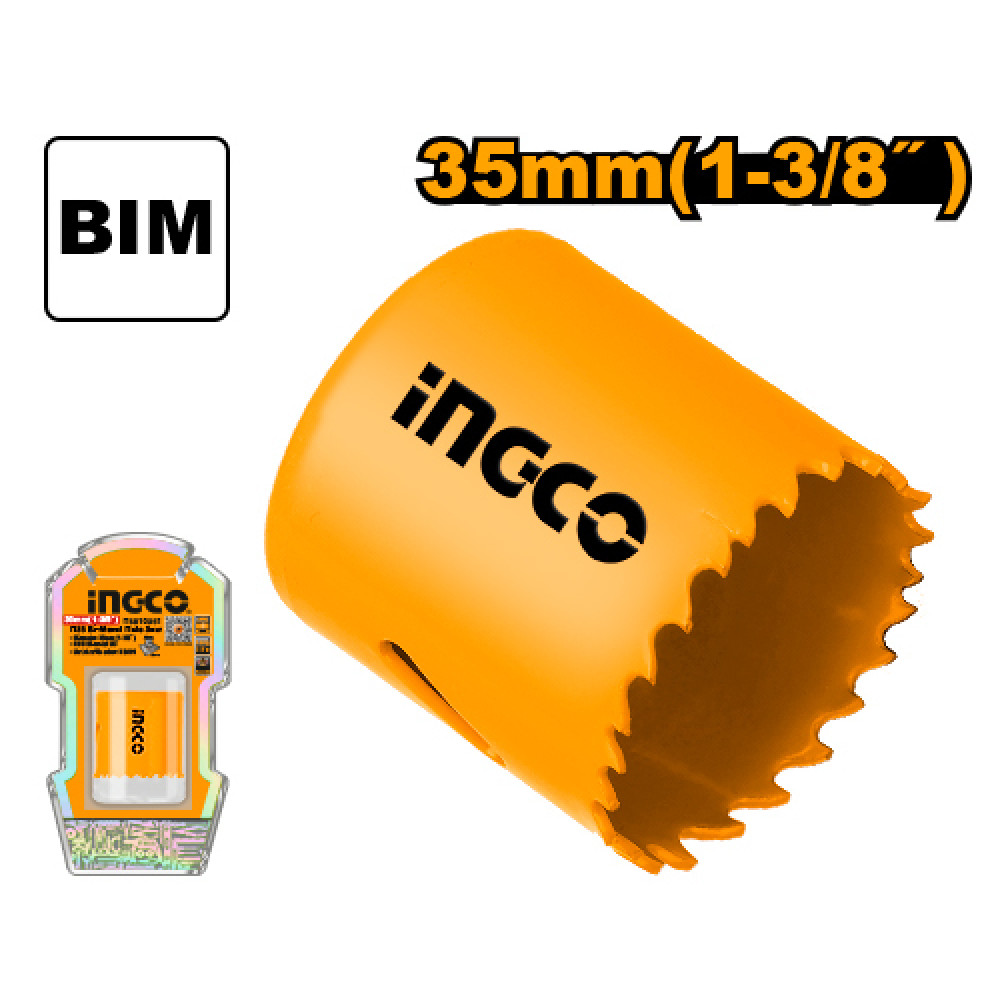 Коронка биметаллическая по металлу 35 мм INGCO HSB10351 предназначена для сверления отверстий в дереве, гипсакортоне и цветных металлах ALU, Cu, Ni, Ms, Zn пластике и прочих материалах.