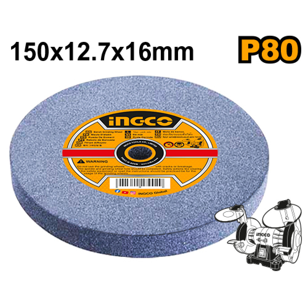 Круг шлифовальный абразивный P80 150x12,7x16 мм INGCO AGW1506024 предназначен для обработка деталей быстрорежущих и нержавеющих сталей. Обработка тонких деталей и инструментов ножи, заточка.