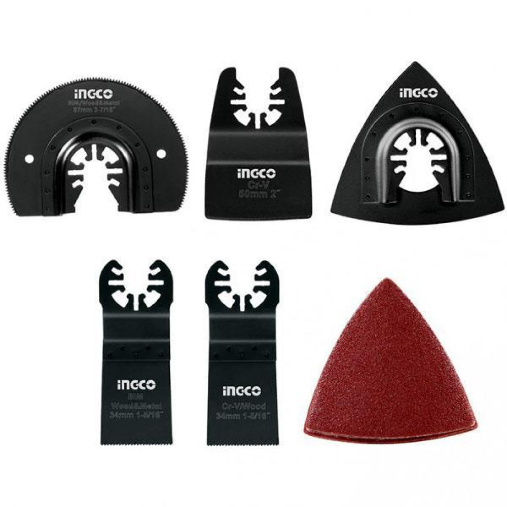 Набор насадок для многофункционального инструмента и реноватора INGCO AKTMT1502 В наборе пять насадок, которые служат для реза, шлифовки и зачистки различных материалов.