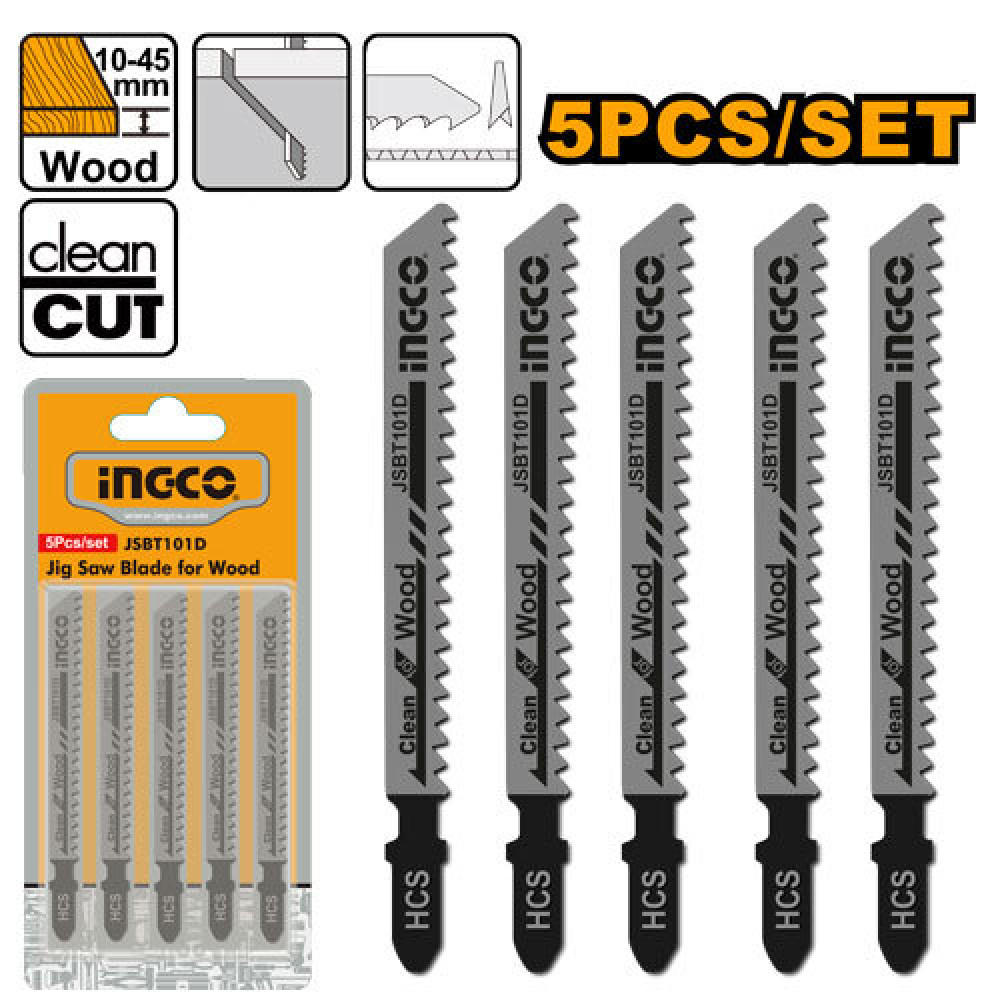 Пильное полотно для элеткролобзика по дереву 5шт. 74мм-HCS-6TPI INGCO JSBT101D предназначен для резки ДСП, ДВП, древесины, в том числе из хвойных пород, как рабочий элемент электролобзиков.