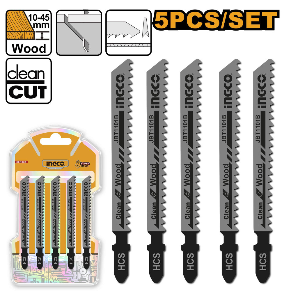 Пильное полотно для элеткролобзика по дереву 5шт. 74мм-HCS-10TPI INGCO JBT1101B предназначен для резки ДСП, ДВП, древесины, в том числе из хвойных пород, как рабочий элемент электролобзиков.
