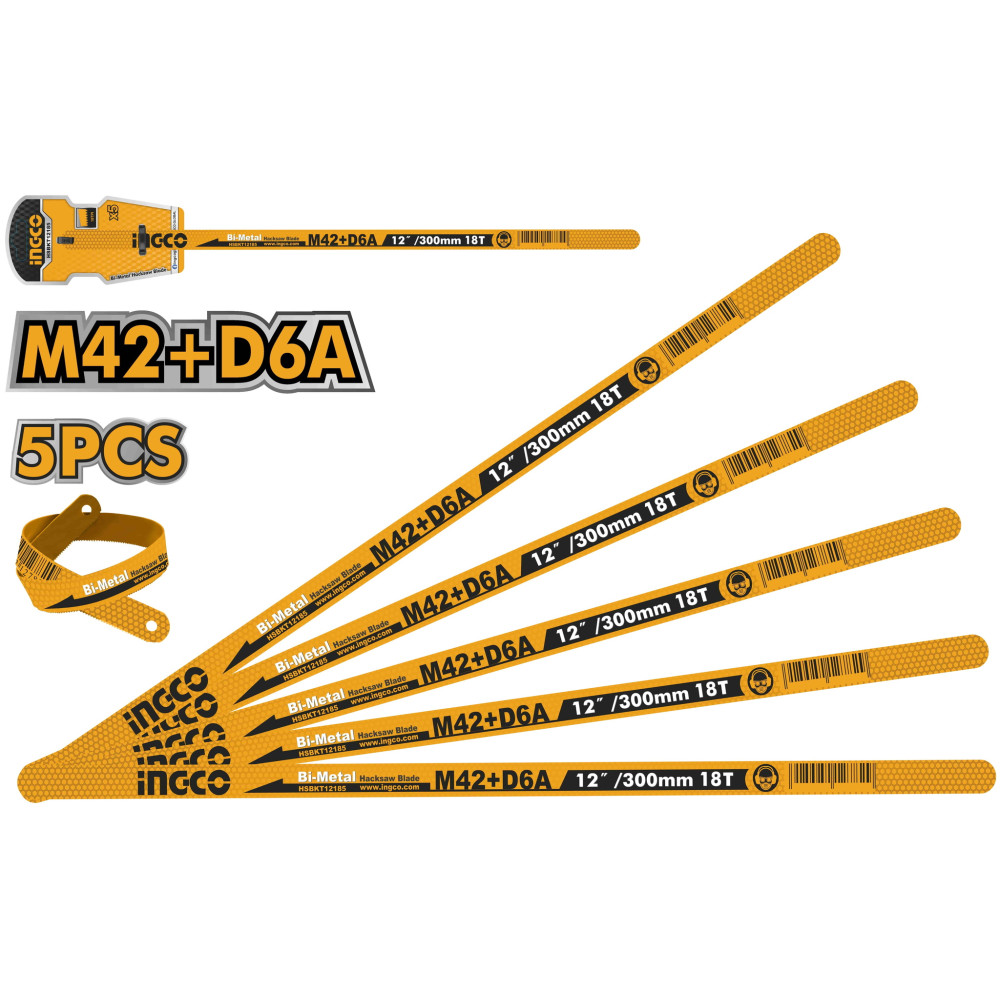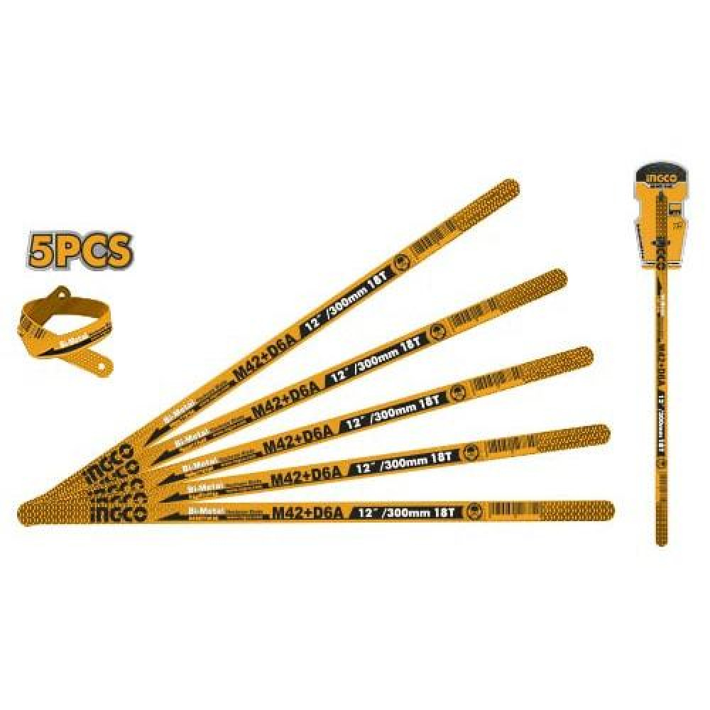 Полотно ножовочное по металлу 300мм 18Т 5шт. Bi-Metall INGCO HSBKT12185 INDUSTRIAL предназначено для использования совместно с ножовками по металлу.