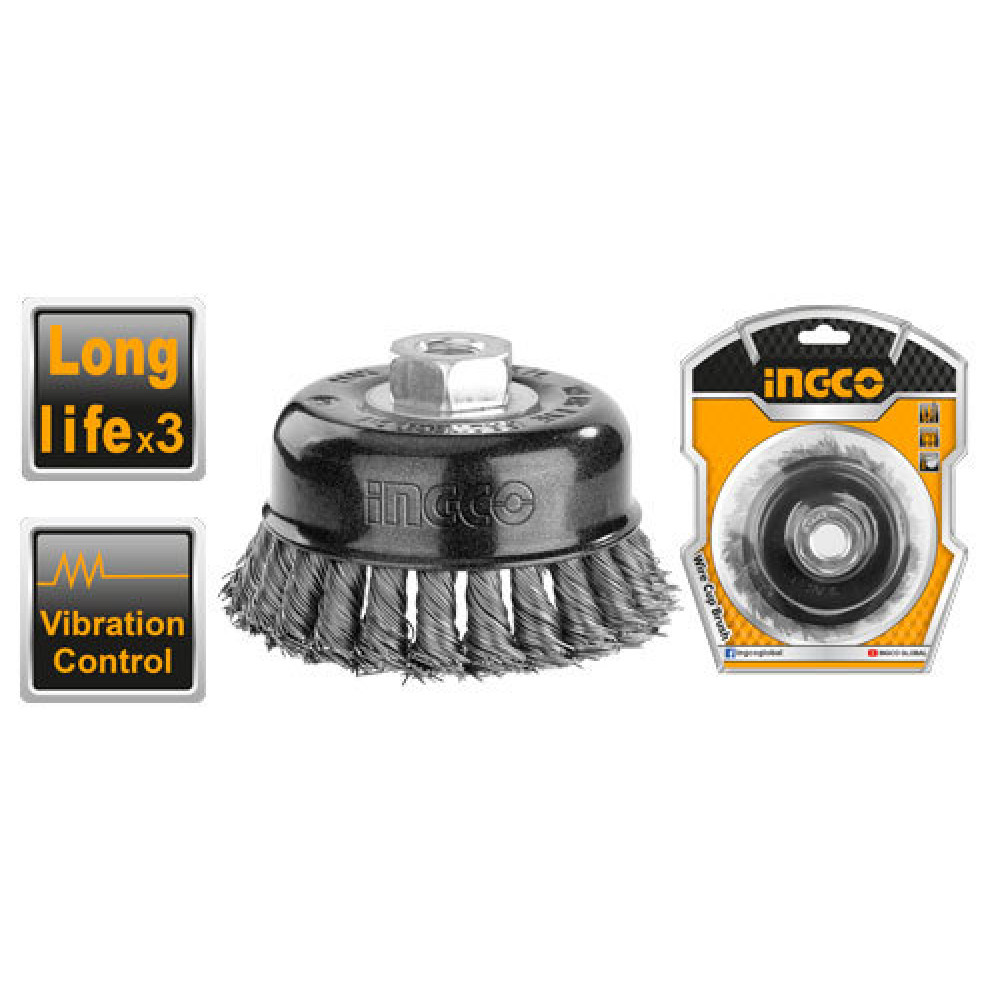 Чашечная щетка плетеная М14 для УШМ 75х0,5мм INGCO WB20755 INDUSTRIALприменяется совместно с угловыми шлифовальными машинами и предназначена для снятия лака, краски, зачистки от ржавчины металлических поверхностей и изделий.