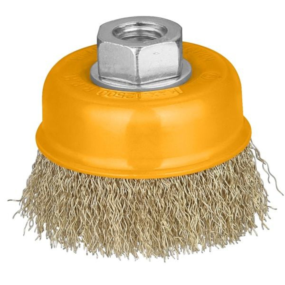 Щетка проволочная чашечная М14 100х0,3мм INGCO WB11001 применяется совместно с угловыми шлифовальными машинами и предназначена для снятия лака, краски, зачистки от ржавчины металлических поверхностей и изделий.