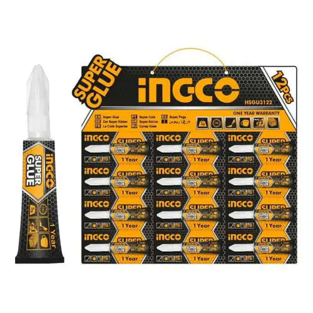 Супер клей 3 гр. INGCO HSGU3122 быстросохнущий клей низкой вязкости на основе цианакрилата. Незаменим там, где требуется очень быстрое высыхание или точечное применение.