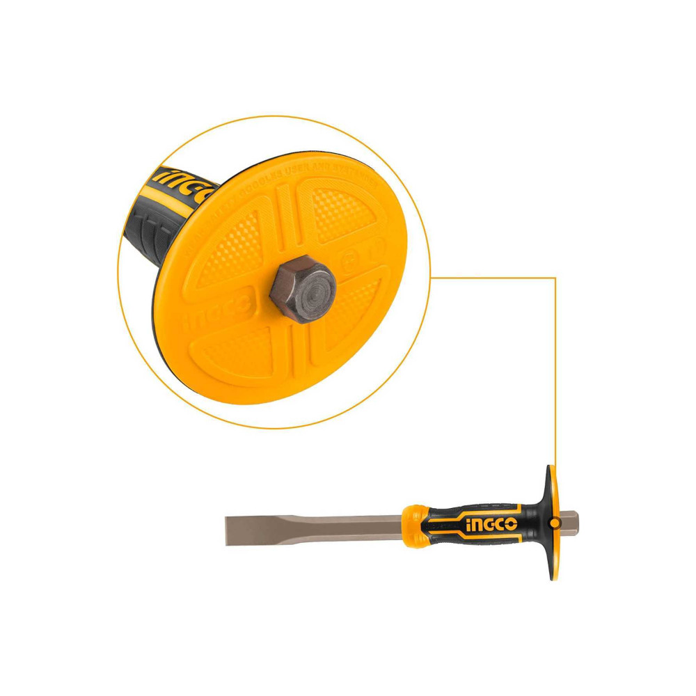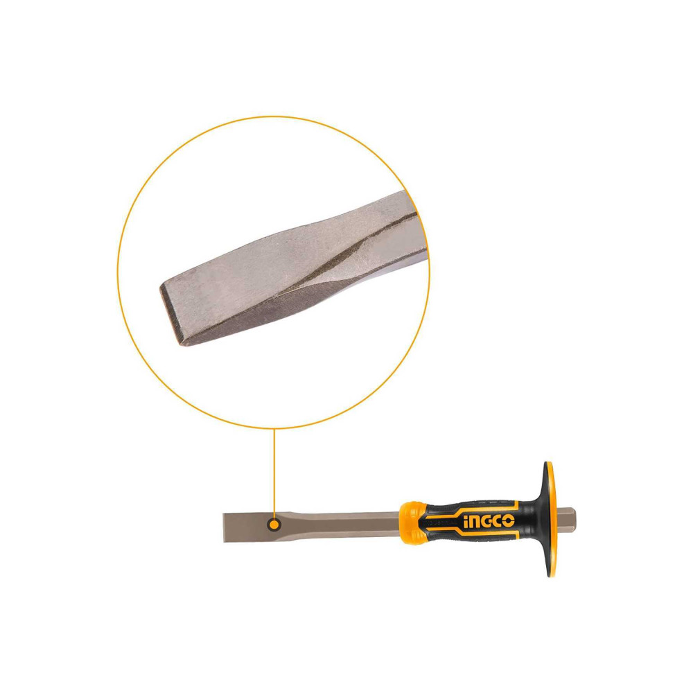 Зубило плоское с протектором 305х19х25 мм INGCO HCCL852519 INDUSTRIAL используется для раскалывания кирпича, блоков из газосиликата и пенобетона, а также иных строительных материалов.