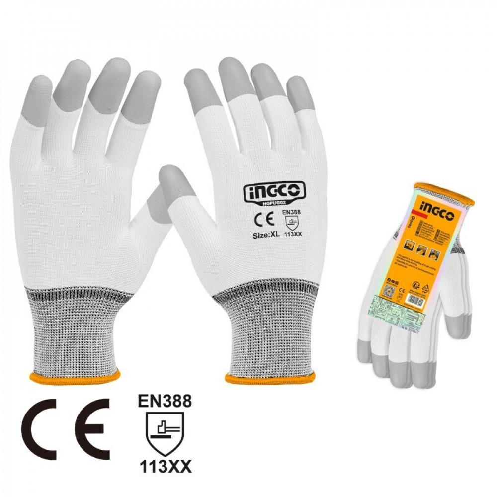Перчатки XL с полиуретановым покрытием на кончиках пальцев INGCO HGPUG02 предназначены для разгрузо-погрузочных работ и т.д.