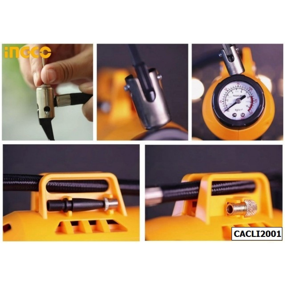 Автомобильный аккумуляторный компрессор 20В Li-Ion INGCO CACLI2018 серии P20S это компактное приспособление, которое с легкостью поместится в багажник любого транспорта.