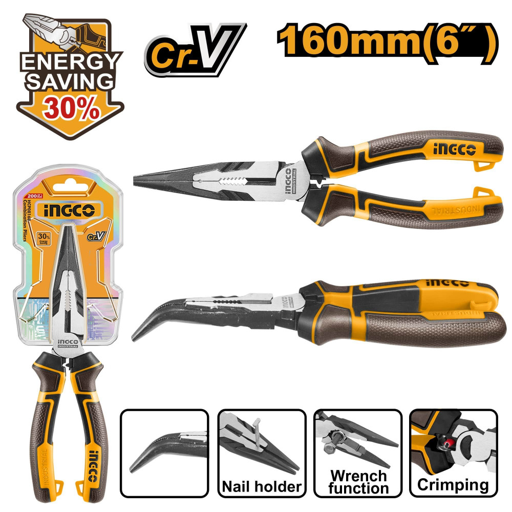 Тонкогубцы изогнутые 160мм SUPER INGCO HHBNP28160 INDUSTRIAL объединяет несколько инструментов в одном корпусе, что обеспечивает удобство и высокую скорость выполнения работ и применяются в качестве ручного инструмента при проведении слесарных, ремонтных и других видов работ, с целью удержания или выгибания деталей.