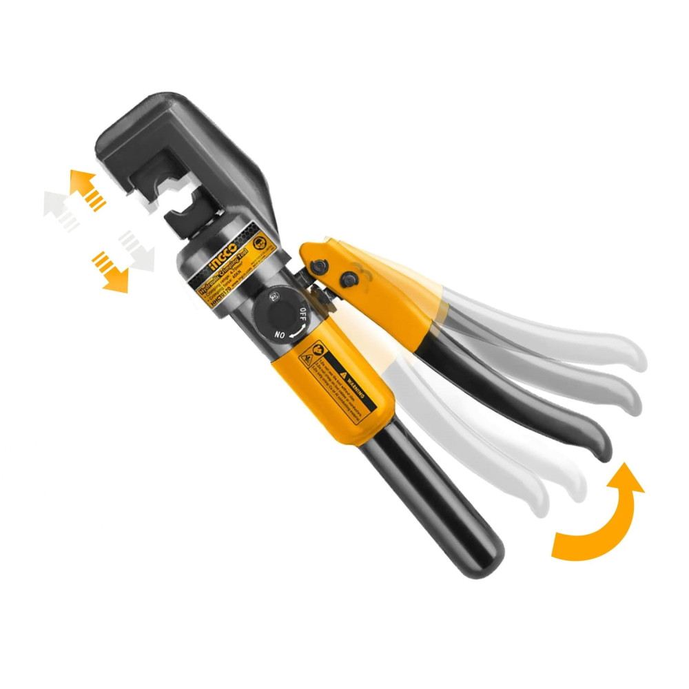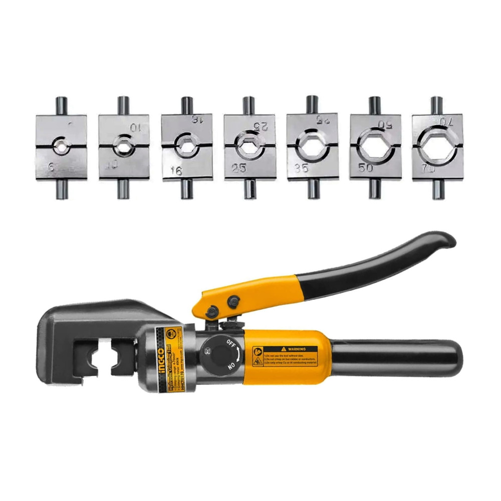 Пресс гидравлический ручной 4-70 мм2 INGCO HHCT0170 предназначены для создания механических соединений типа кабельная жила-гильза или кабельная жила-наконечник с помощью механической опрессовки.