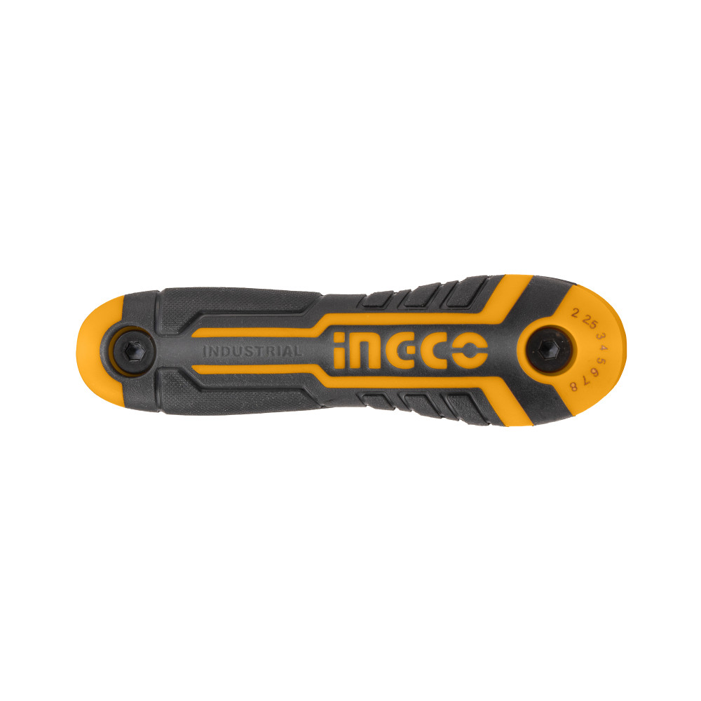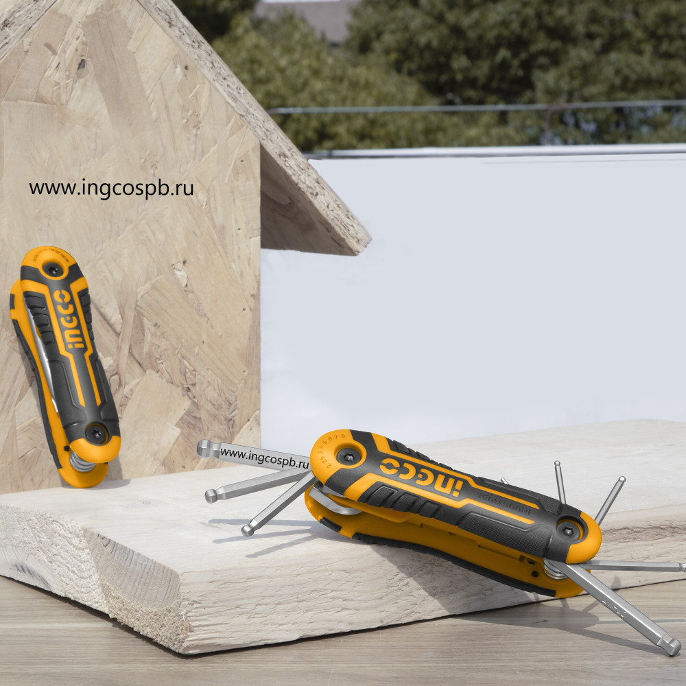 Набор ключей HEX с шаромINGCO HHK14082 INDUSTRIALвключает в себя8 ключейразличного размера, которые служат для монтажа и демонтажа крепежа с внутренним шестигранным шлицем.