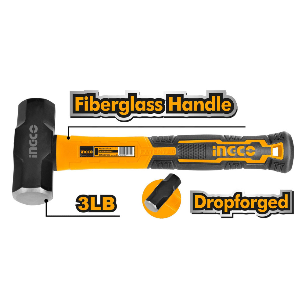 Кувалда с фибергласовой рукояткой INGCO HSLH8802ручной ударный инструмент для выполнения небольших слесарных и сборочных работ.
