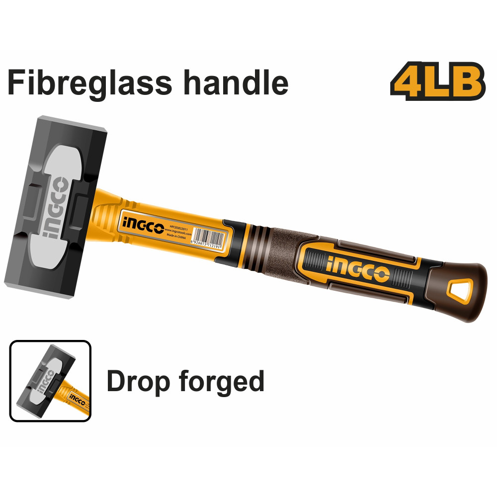 Кувалда с фибергласовой рукояткой 1,8кг. SUPER INGCO HSLH8104 INDUSTRIAL представляет собой высокопрочный ударный инструмент.