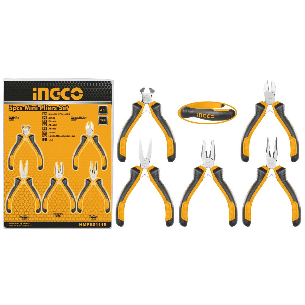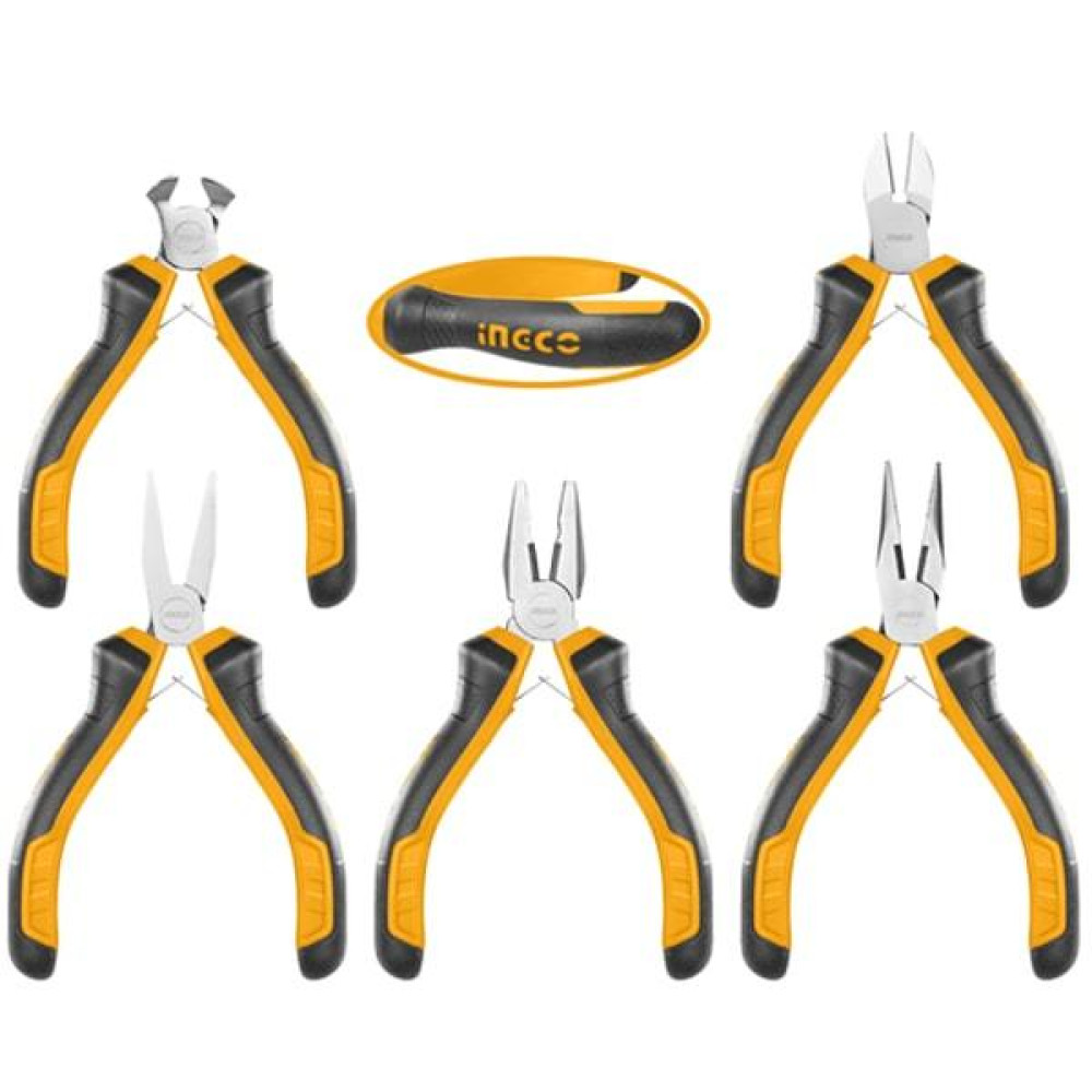 Набор мини плоскогубцев 5 пред. INGCO HMPS01115 пригодится для работы с мелкими предметамив условиях ограниченного пространства.