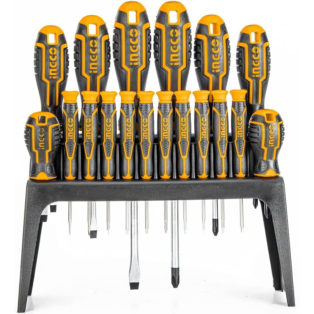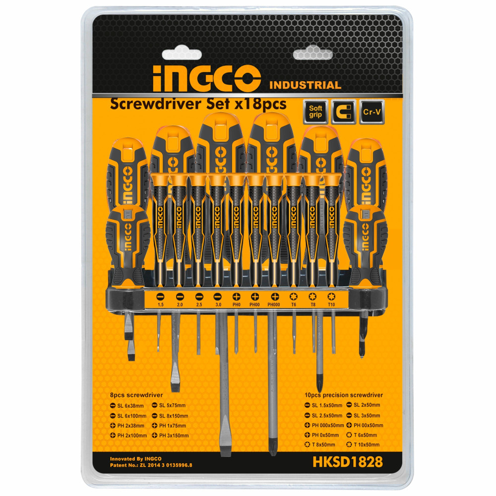 Универсальный набор отверток 18 шт INGCO HKSD1828 предназначен для работ с крепежом. Имеет в комплекте 8 отверток и 10 прецизионных отверток с разным шлицем для точных работс крепежом на платах и деталях электроники.