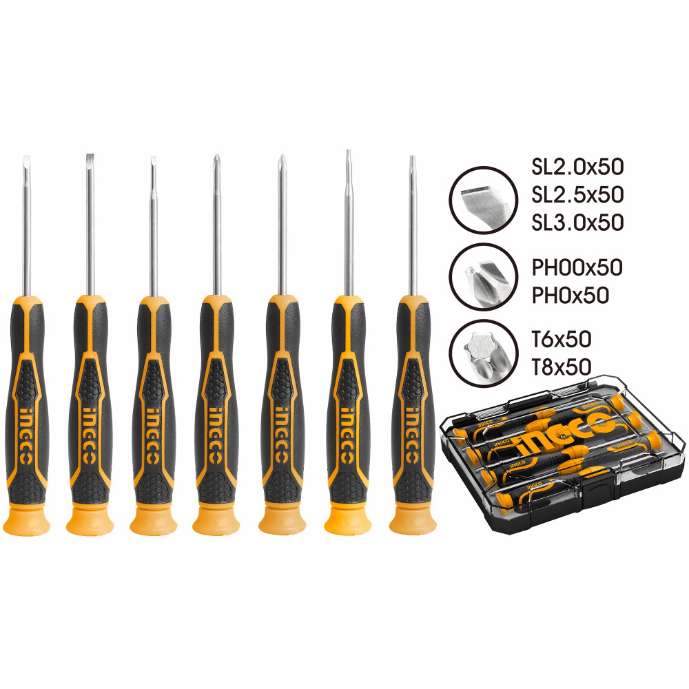 Набор прецизионных отверток 7шт INGCO HKSD0718точныйручной инструмент для выполнения мелких крепежных операций.