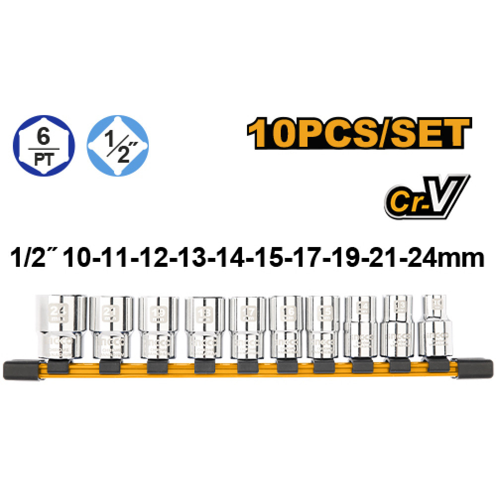 - Торцевые шестигранные головки: 10, 11, 12, 13, 14, 15, 17, 19, 21, 24 мм - 10 шт.