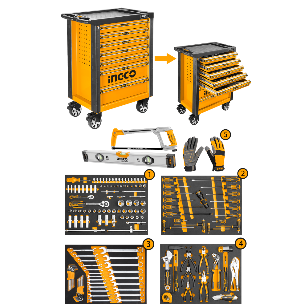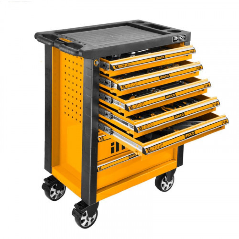 Инструментальная тележка с набором инструментов 162 пред. INGCO HTCS271621 INDUSTRIALсостоит из семи ящиков, позволяет разместить большой набор необходимых инструментов и приспособлений.
