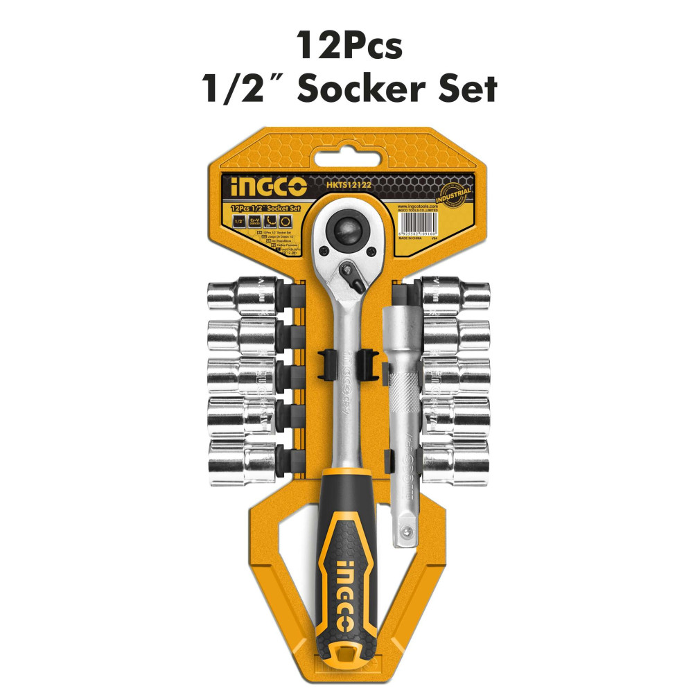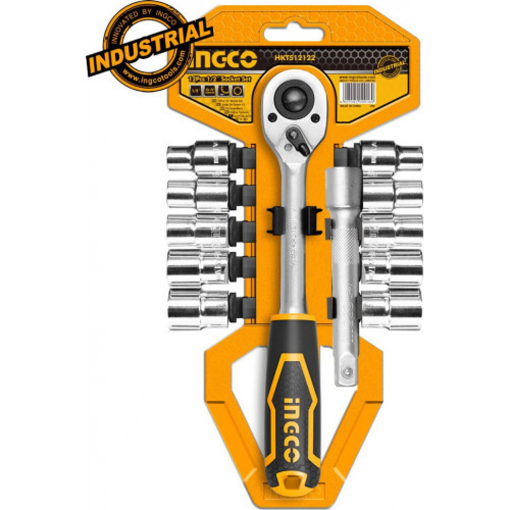 Набор головок 1/2" с трещоткой 12 шт. INGCO HKTS12122 INDUSTRIAL используется для монтажа и демонтажа резьбовых соединений.